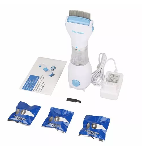 El paquete incluye: - 1 peine eléctrico para repeler piojos - 3 filtros de repuesto - 1 Manual